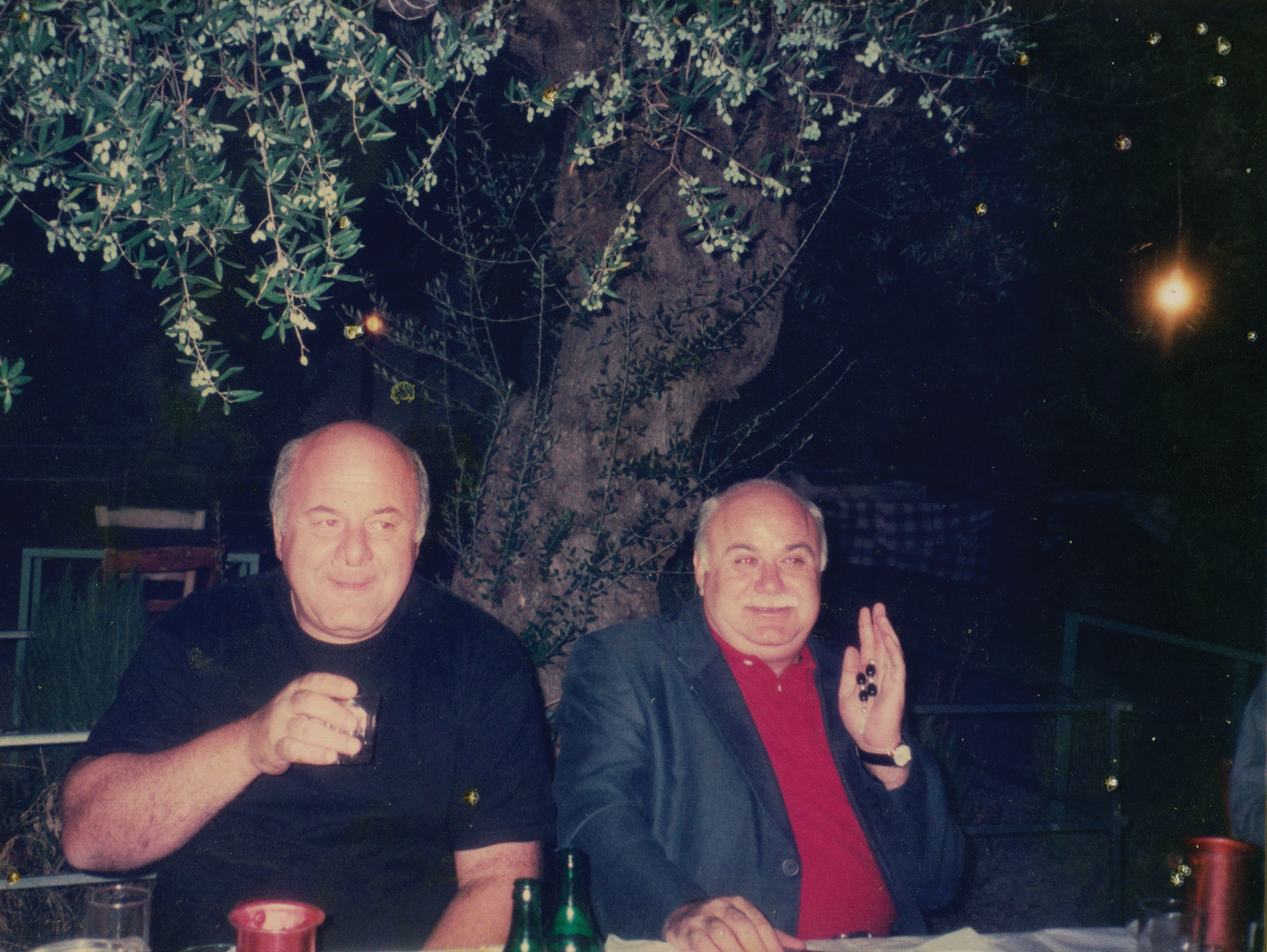 Δείπνο στην αυλή του κοινού μας φίλου, του Γιώργου Γεωργιόπουλου, στον Αριστομένη, μαζί με τη γυναίκα, τα παιδιά τους, τον Πέτρο, τον σκηνοθέτη Τυπάλδο και τον φωτογράφο Μίμη Ζώη. Ο Πέτρος τραγουδάει, τραγουδάει…
